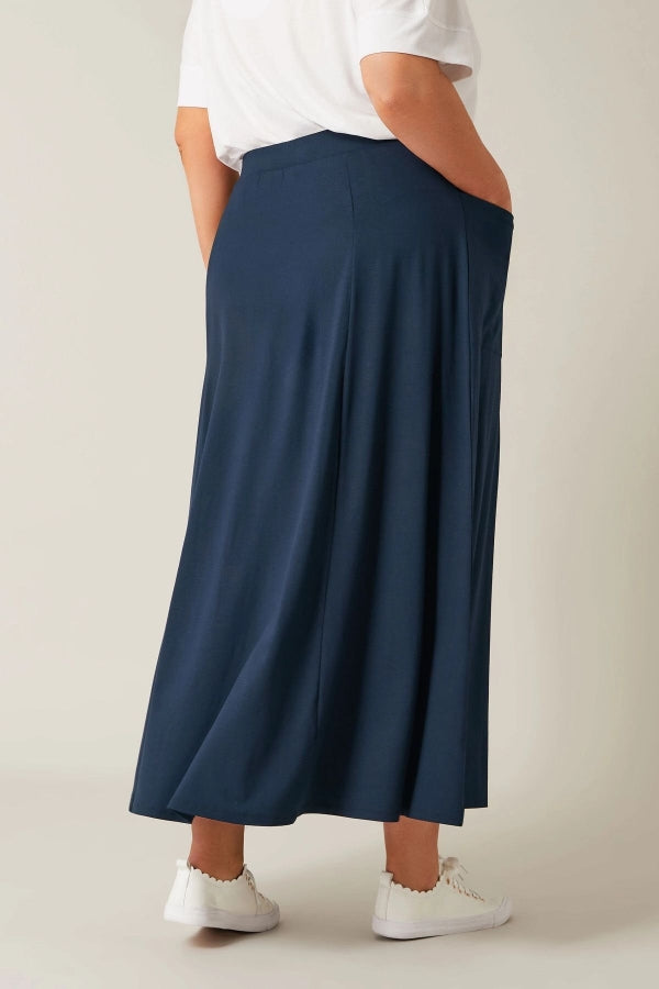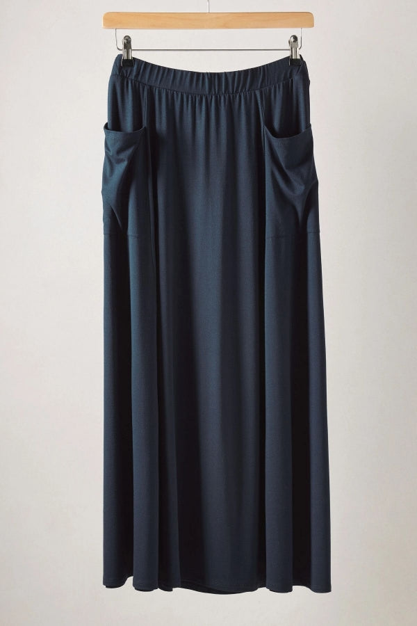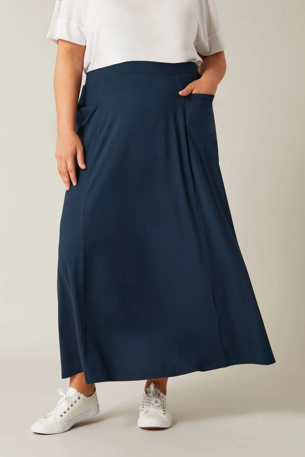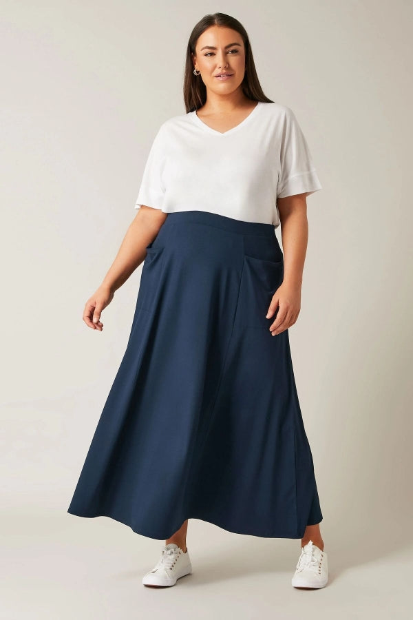 Büyük Beden Beli Lastikli Cep Detaylı Uzun Kesim Etek 615392