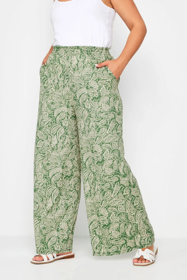 Büyük Beden Beli Lastikli Cepli Desenli Geniş Paça Pantolon 143856