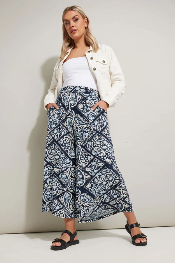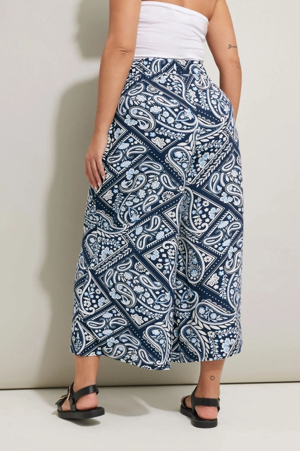 Büyük Beden Beli Lastikli Cepli Desenli Kapri Pantolon 145279