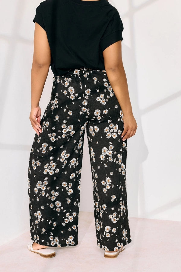 Büyük Beden Beli Lastikli Cepli Papatya Desenli Pantolon 310139