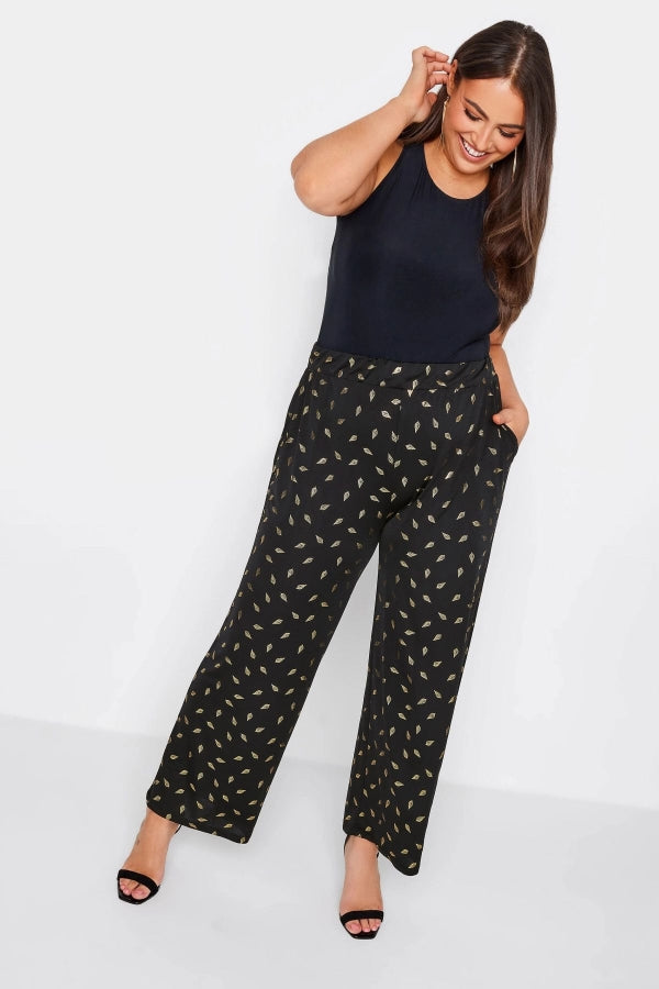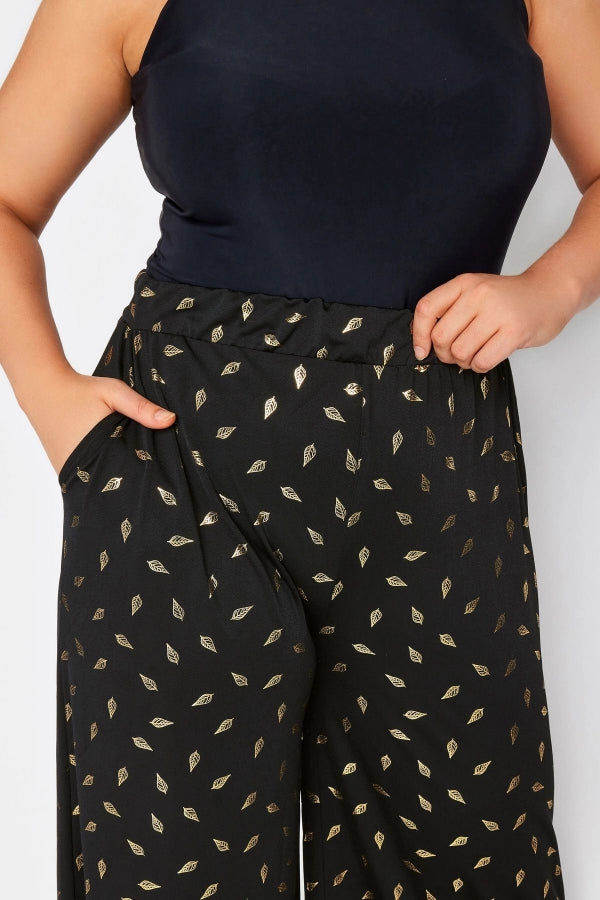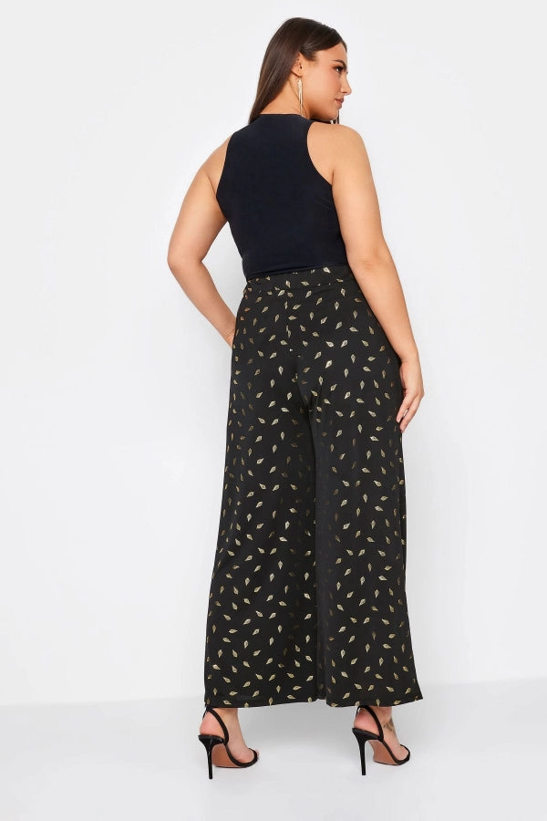 Büyük Beden Beli Lastikli Cepli Soyut Desenli Geniş Paça Pantolon 302575