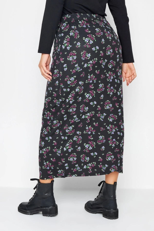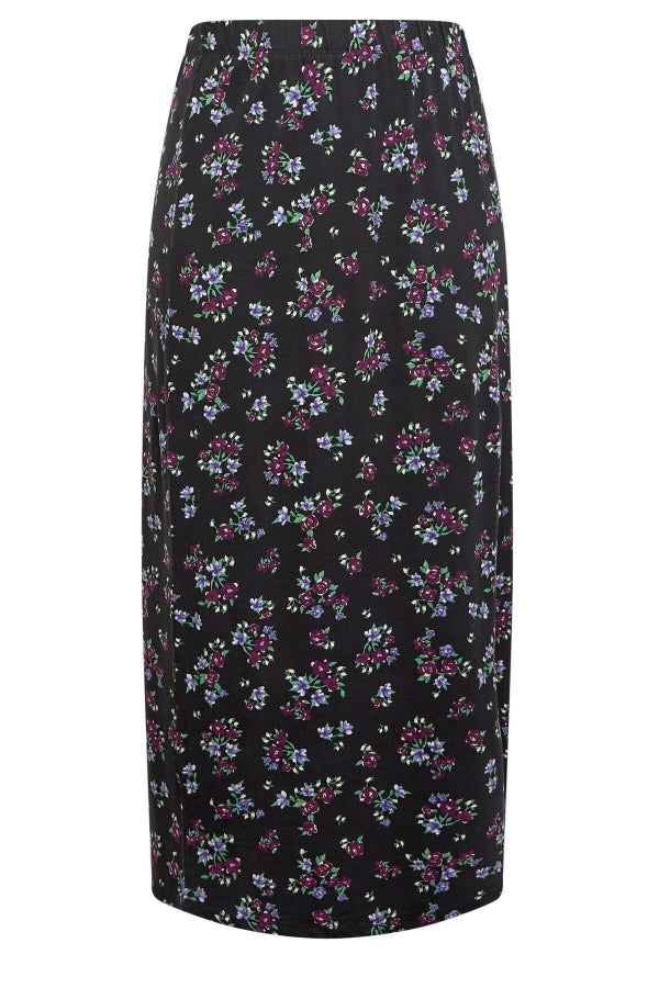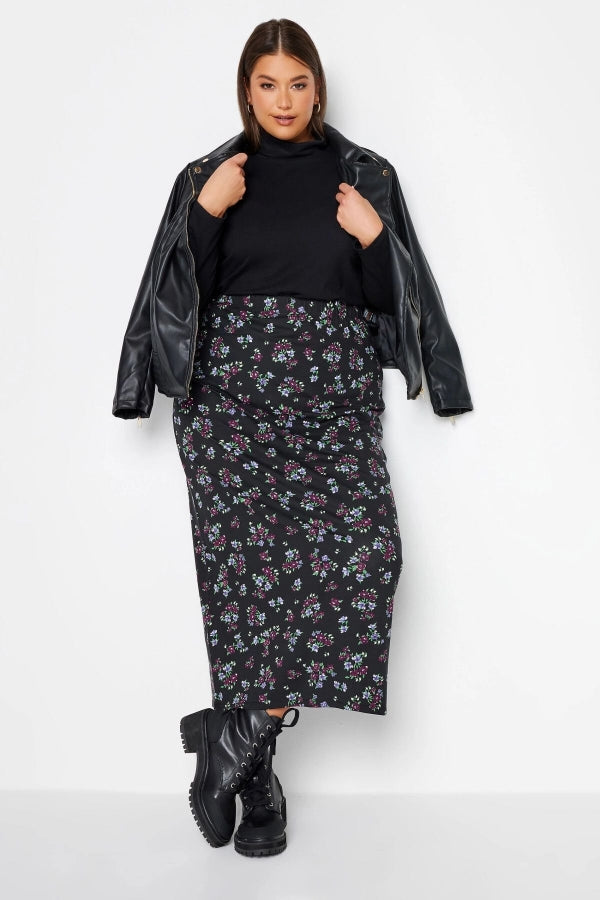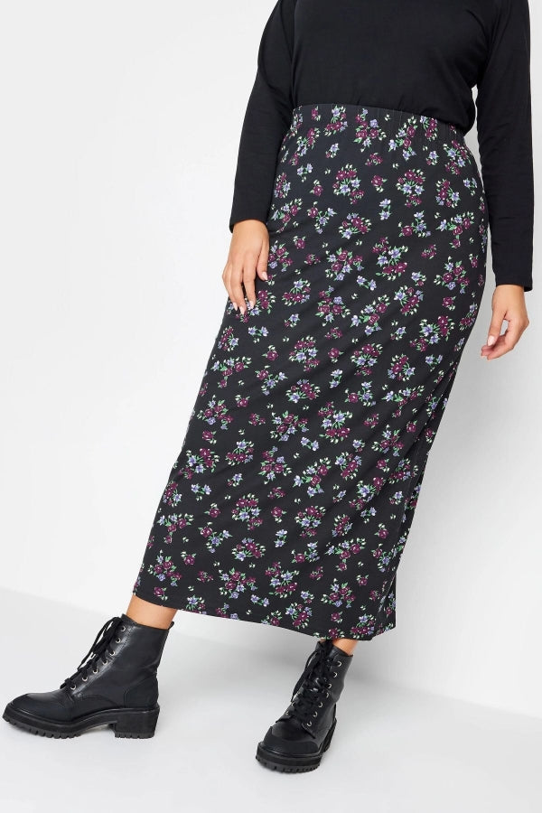 Büyük Beden Beli Lastikli Cepsiz Çiçek Desenli Uzun Etek 137619