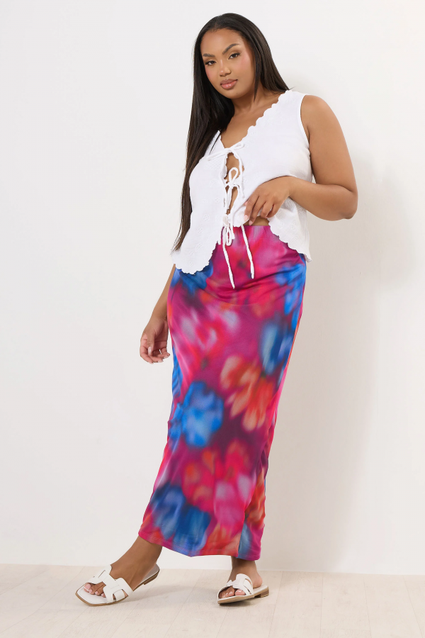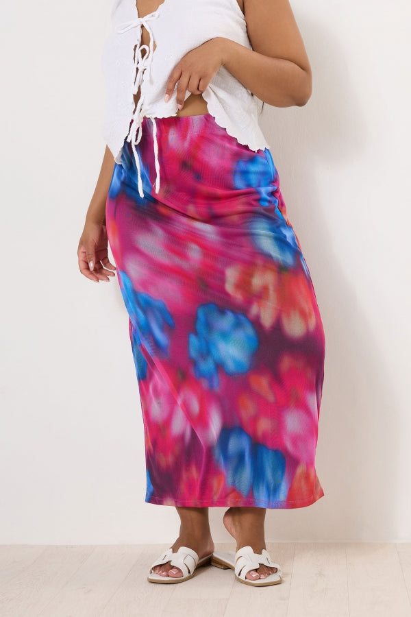 Büyük Beden Beli Lastikli Desenli Astarlı Uzun Tül Etek 160297