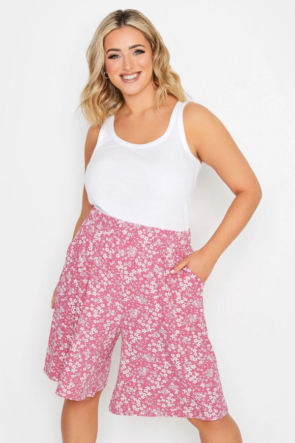 Büyük Beden Beli Lastikli Desenli Bol Kesim Likralı Şort 144847