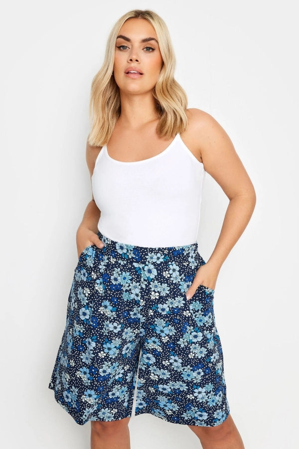 Büyük Beden Beli Lastikli Desenli Bol Kesim Likralı Şort 145080