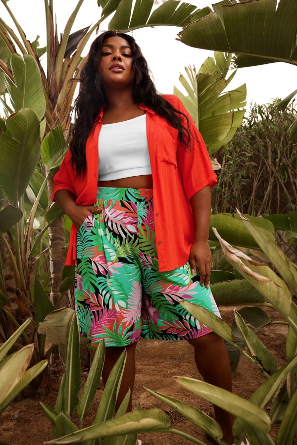 Büyük Beden Beli Lastikli Desenli Bol Kesim Likralı Şort 145100