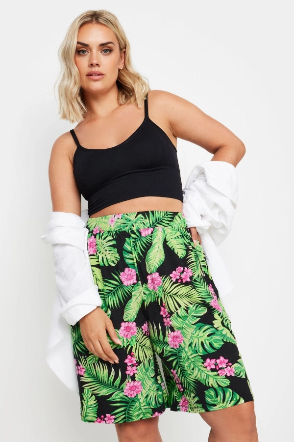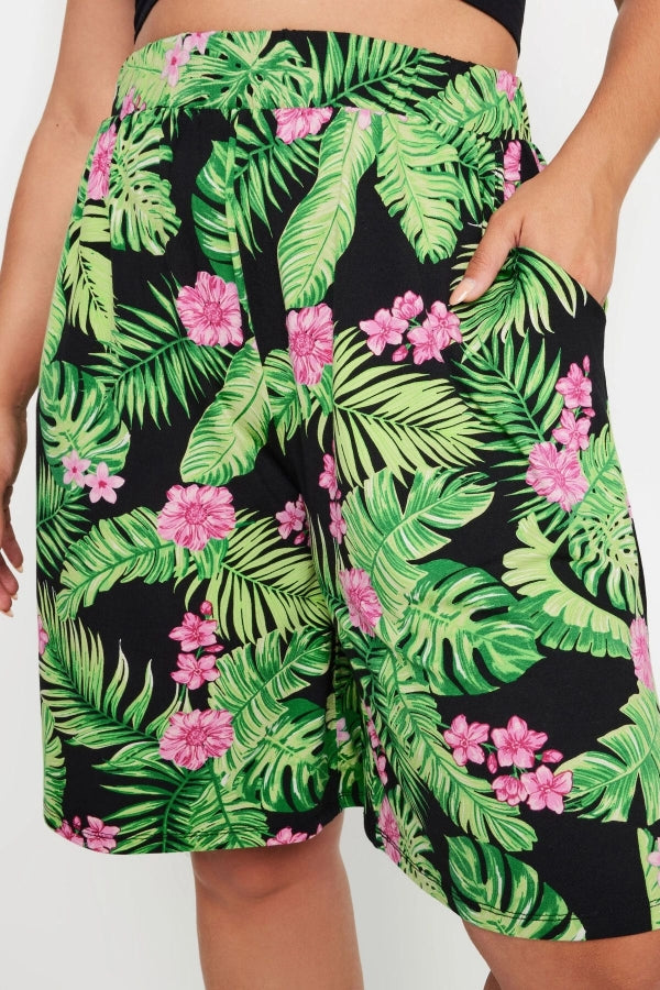 Büyük Beden Beli Lastikli Desenli Bol Kesim Likralı Şort 145102