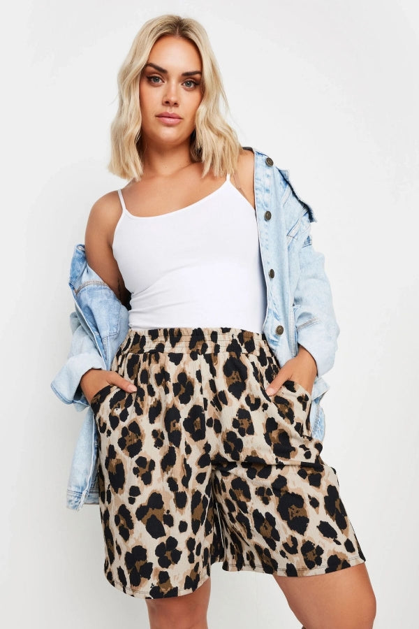 Büyük Beden Beli Lastikli Desenli Bol Kesim Likralı Şort 145134