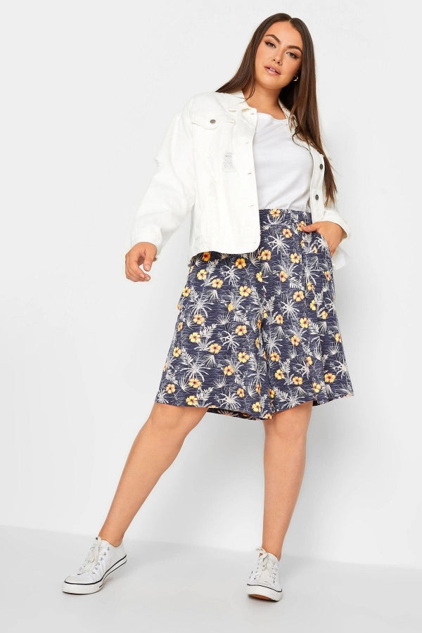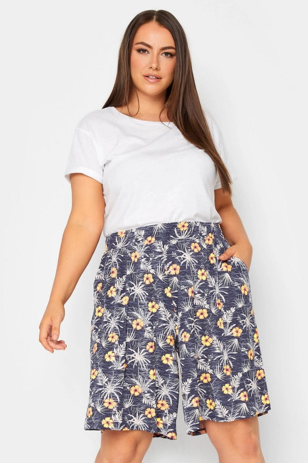 Büyük Beden Beli Lastikli Desenli Bol Kesim Likralı Şort 302404