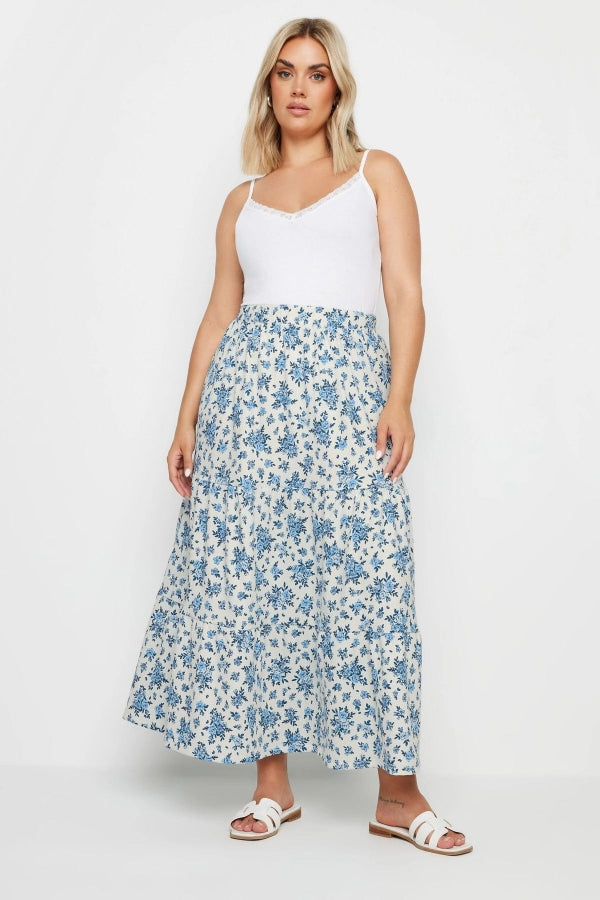 Büyük Beden Beli Lastikli Desenli Kat Kat Uzun Etek 160318