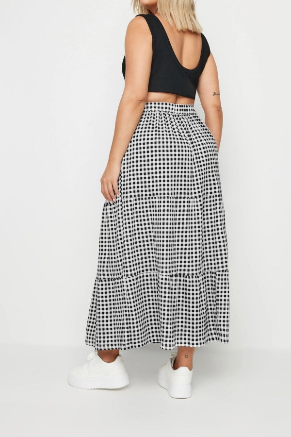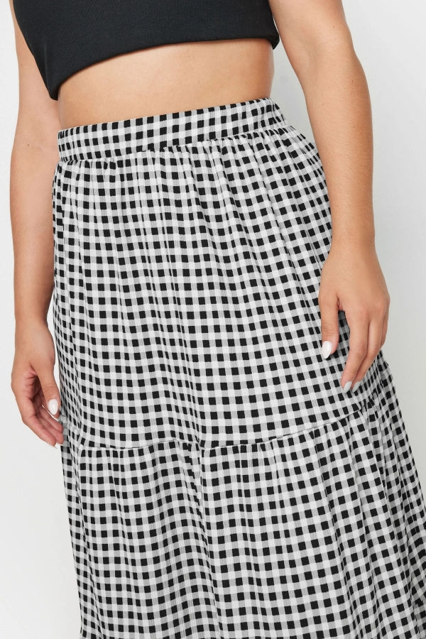 Büyük Beden Beli Lastikli Desenli Kat Kat Uzun Etek 160326