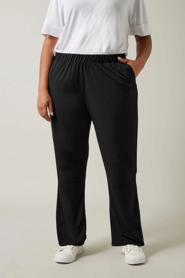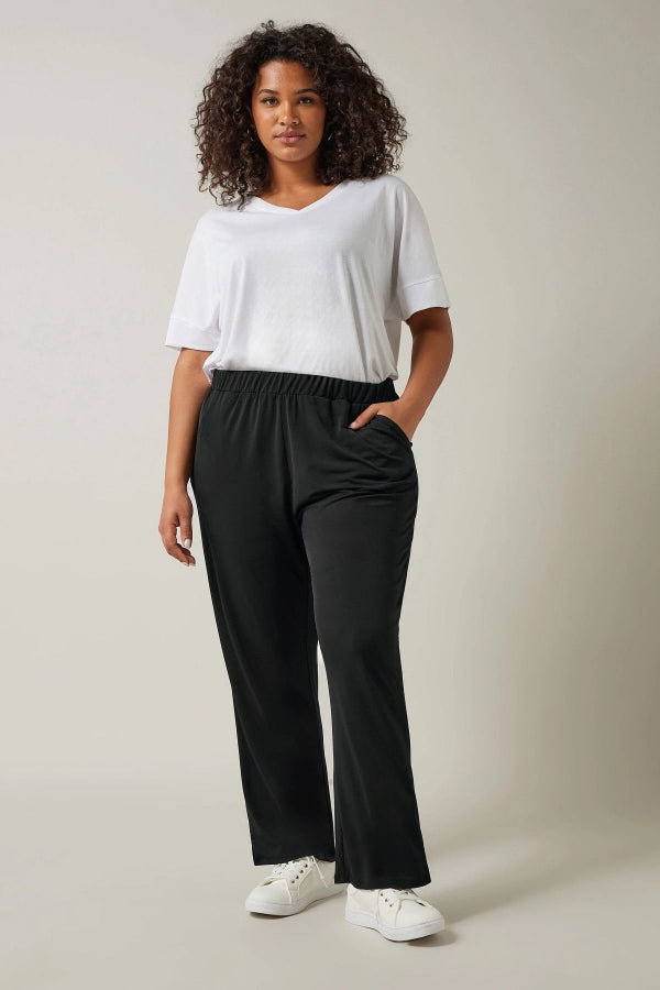 Büyük Beden Beli Lastikli Rahat Kalıp Cepli Geniş Paça Pantolon 615402