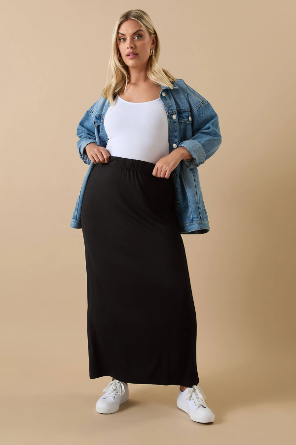 Büyük Beden Beli Lastikli Rahat Kalıp Cepsiz Streç Uzun Etek 160038