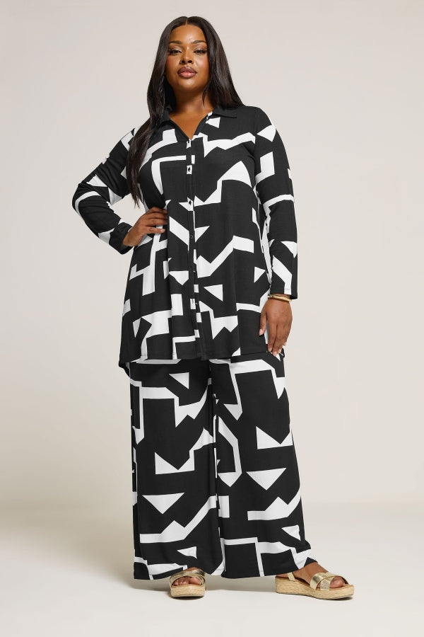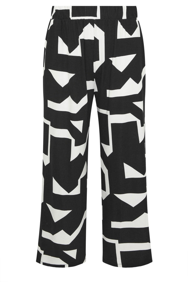 Büyük Beden Beli Lastikli Soyut Desenli Bol Paça Cepli Pantolon 304089