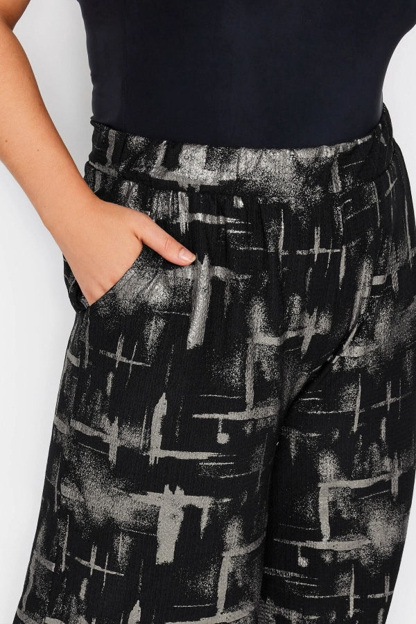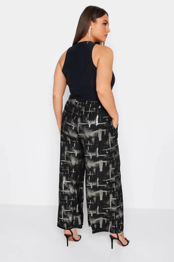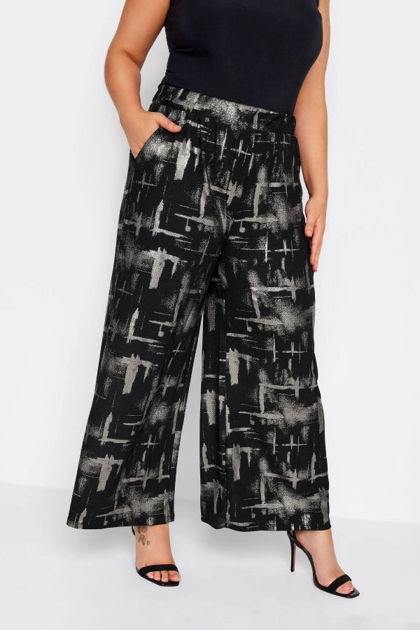 Büyük Beden Beli Lastikli Soyut Desenli Cepli Geniş Paça Pantolon 302576