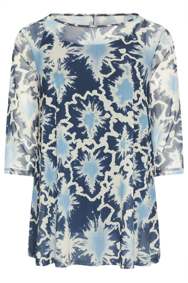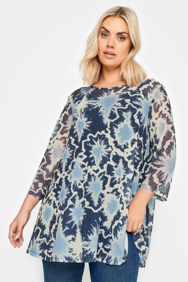 Büyük Beden Bisiklet Yaka Çiçek Desenli Uzun Kollu Tül Bluz 302703