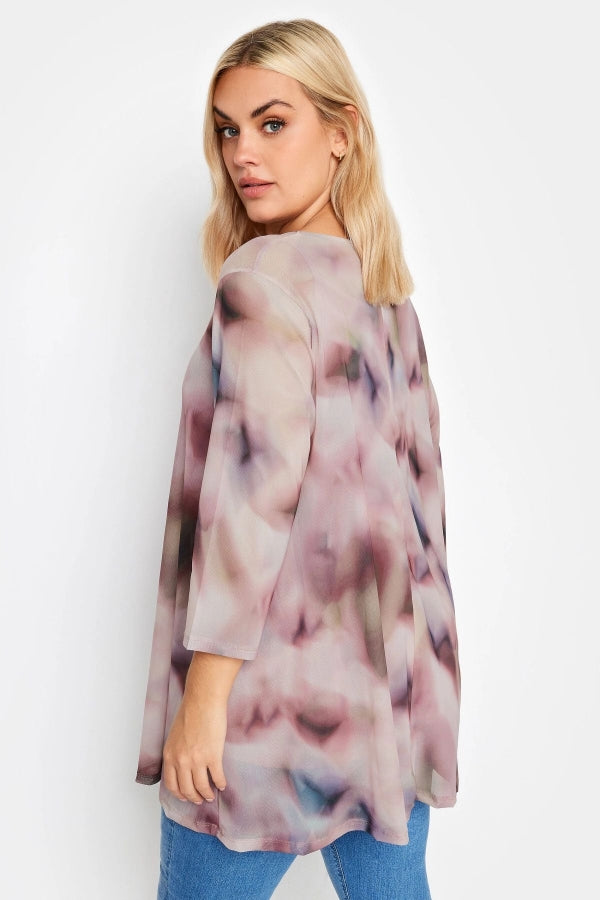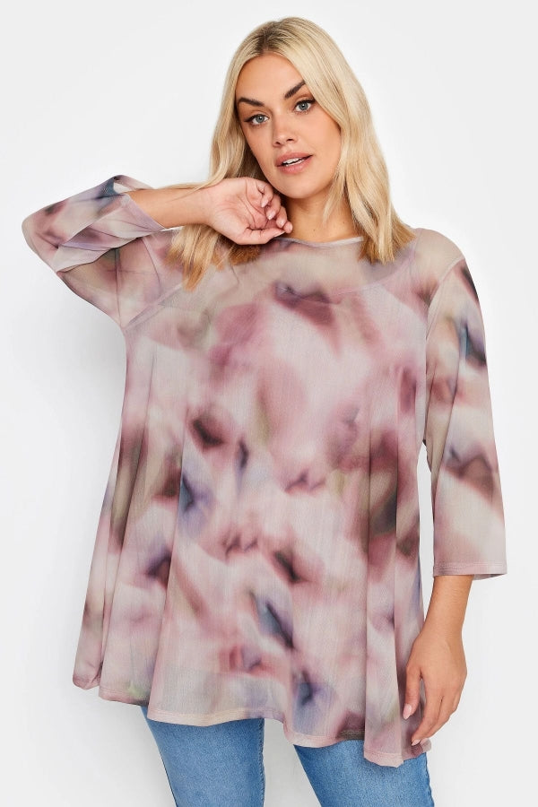 Büyük Beden Bisiklet Yaka Desenli Uzun Kollu Tül Bluz 302702
