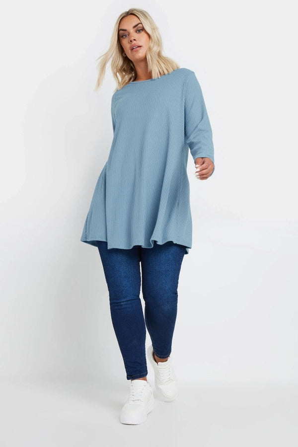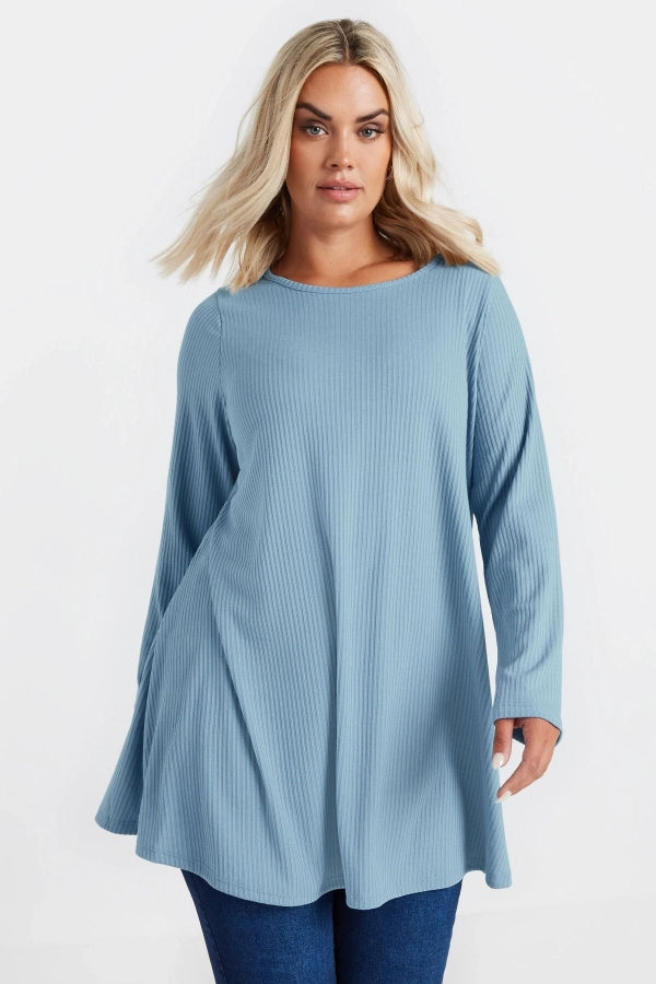 Büyük Beden Bisiklet Yaka Fitilli Eteği Bollaşan Uzun Kesim Bluz 303361