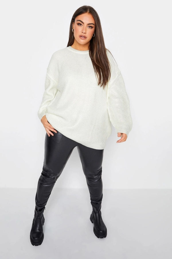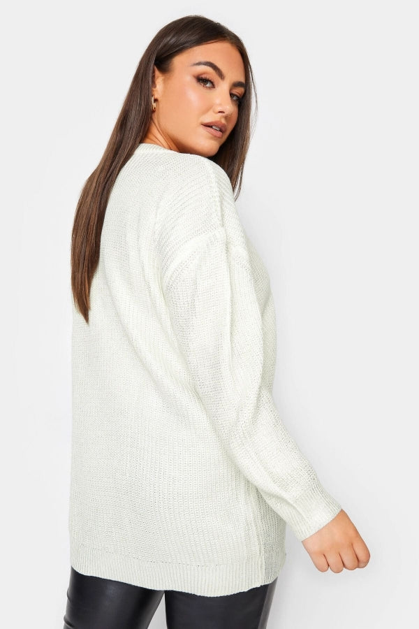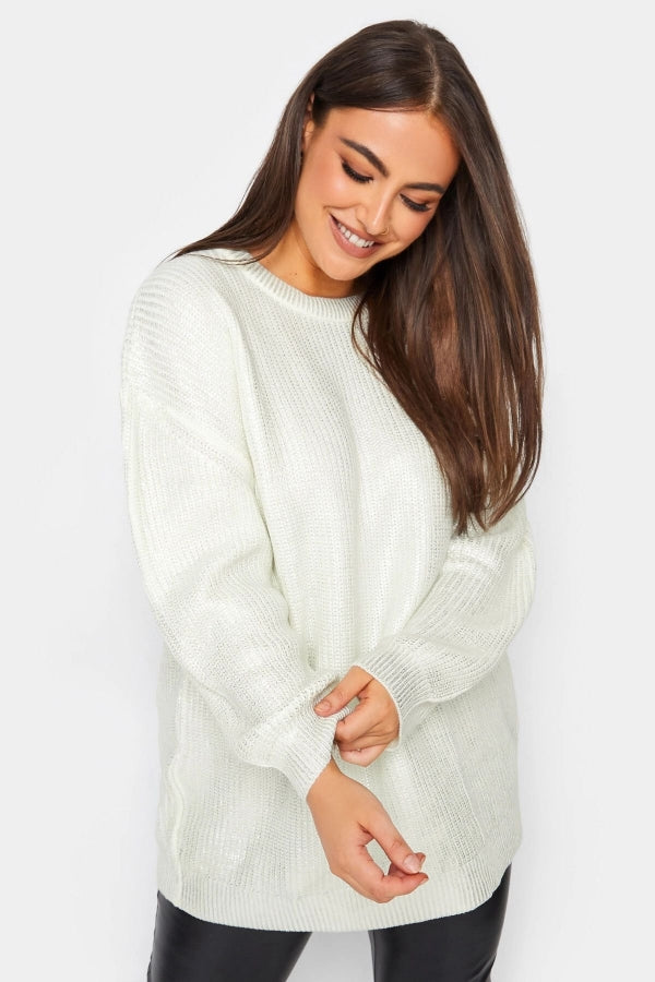 Büyük Beden Bisiklet Yaka Folyo Baskılı Uzun Kollu Kazak 302322