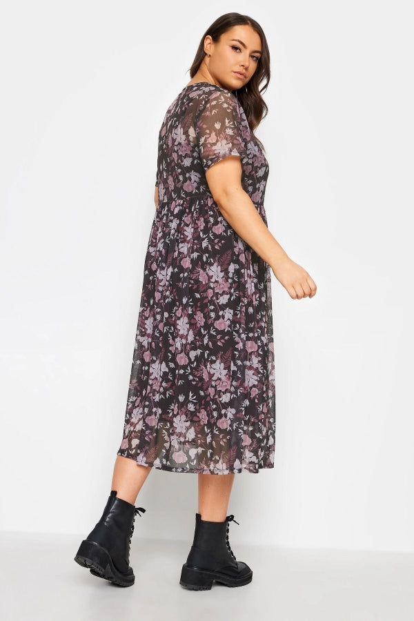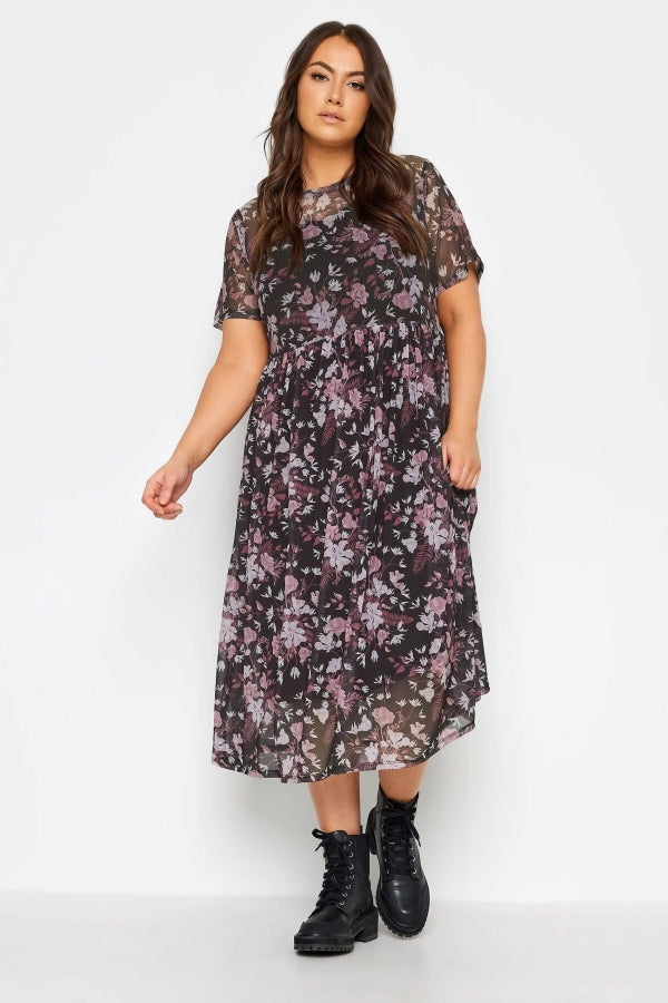 Büyük Beden Bisiklet Yaka İçi Astarlı Desenli Midi Boy Tül Elbise 302705 Vervegrand Büyük Beden Bisiklet Yaka İçi Astarlı Desenli Midi Boy Tül Elbise 302705 Vervegrand