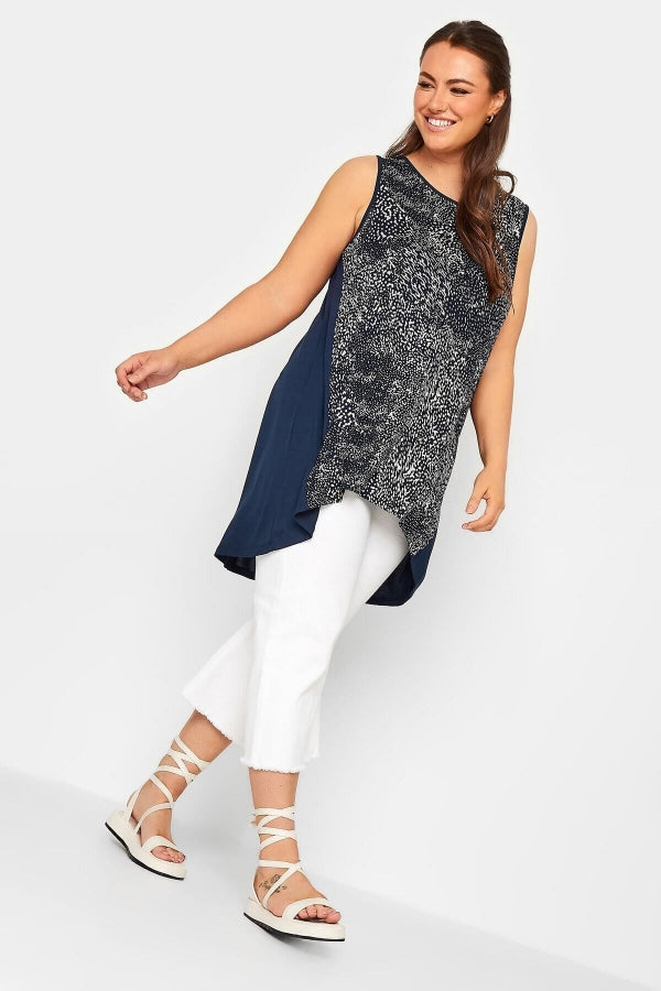 Büyük Beden Bisiklet Yaka Kısa Kollu Arkası Uzun Desenli Bluz 302255