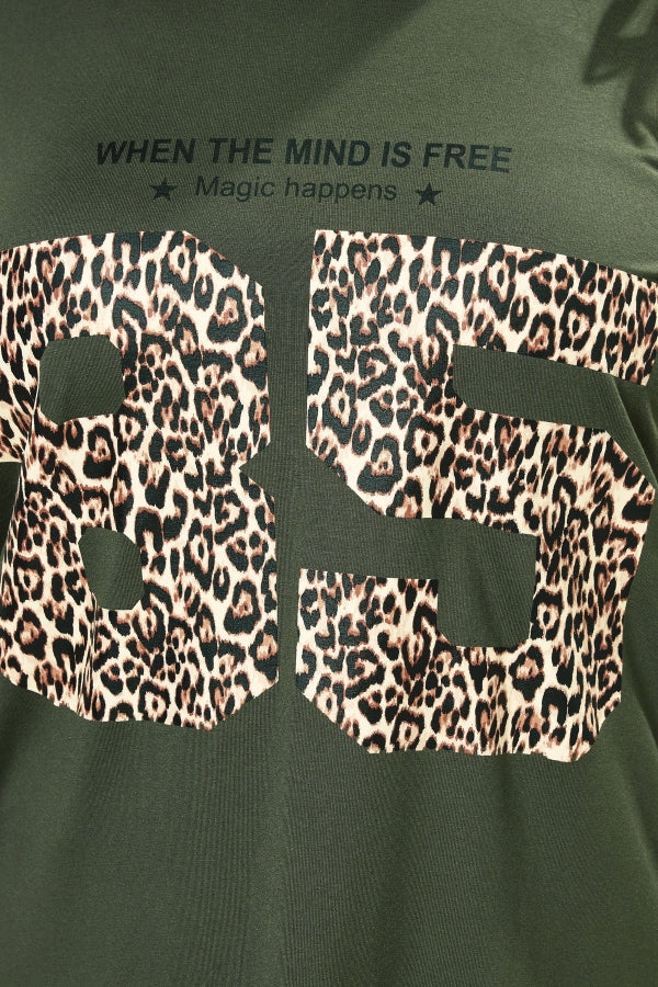 Büyük Beden Bisiklet Yaka Kısa Kollu Baskılı T-shirt 304172