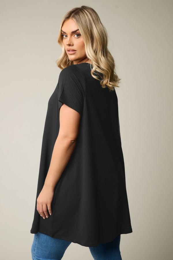 Büyük Beden Bisiklet Yaka Kısa Kollu Bürümcük Kumaş Uzun T-shirt 304000