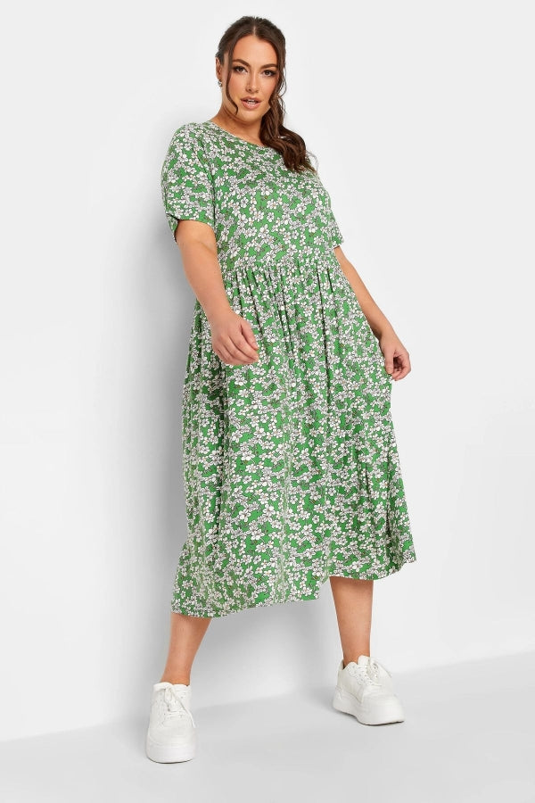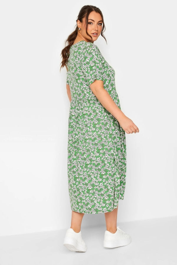 Büyük Beden Bisiklet Yaka Kısa Kollu Desenli Midi Boy Elbise 302229