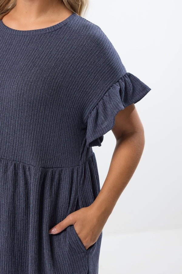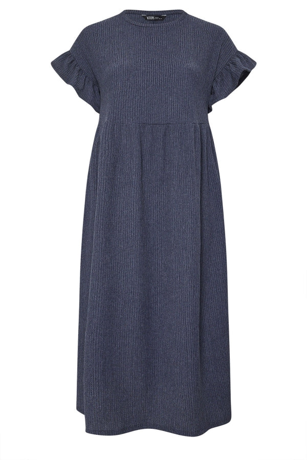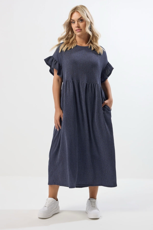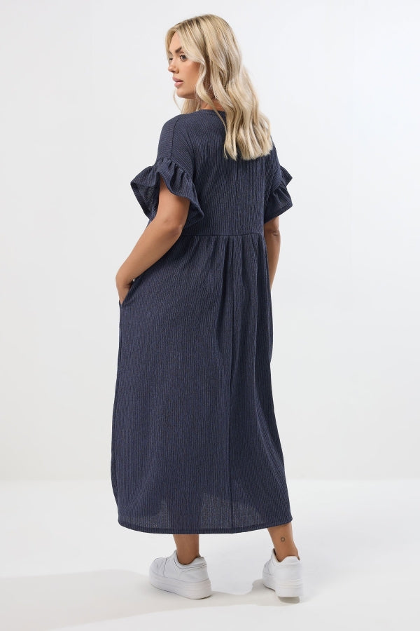 Büyük Beden Bisiklet Yaka Kısa Kollu Fırfırlı Uzun Elbise 270342