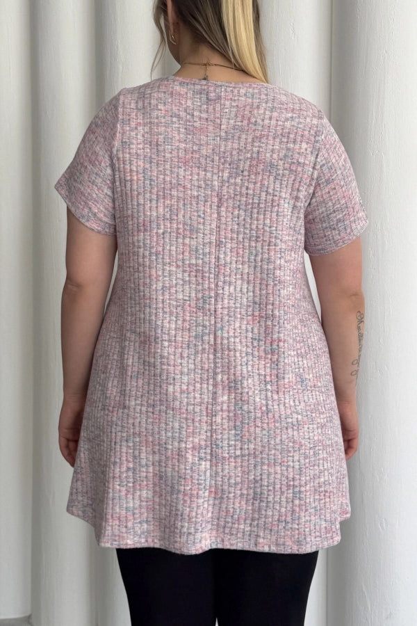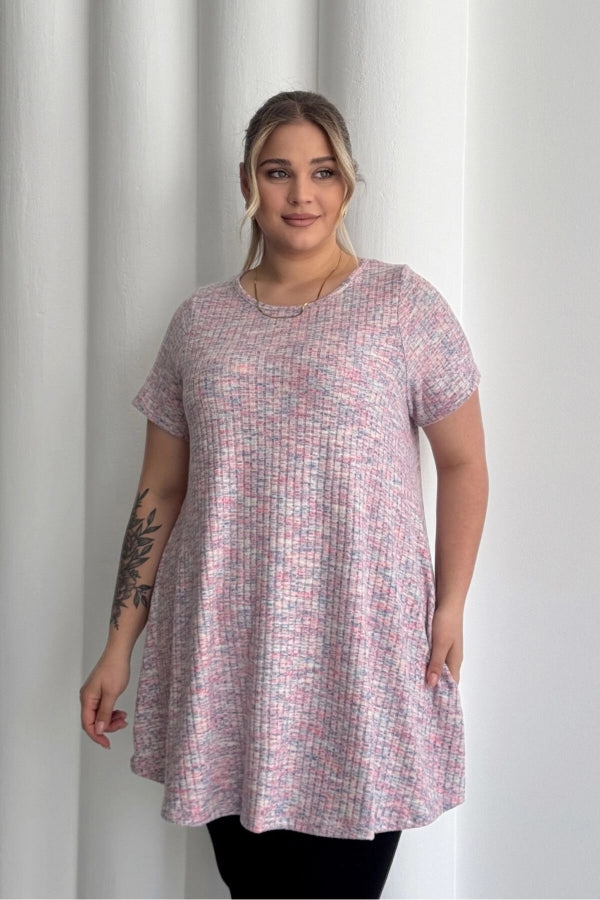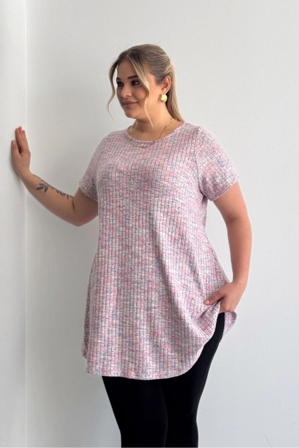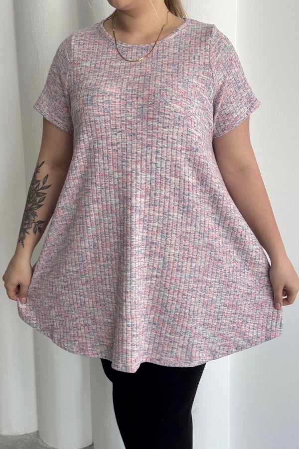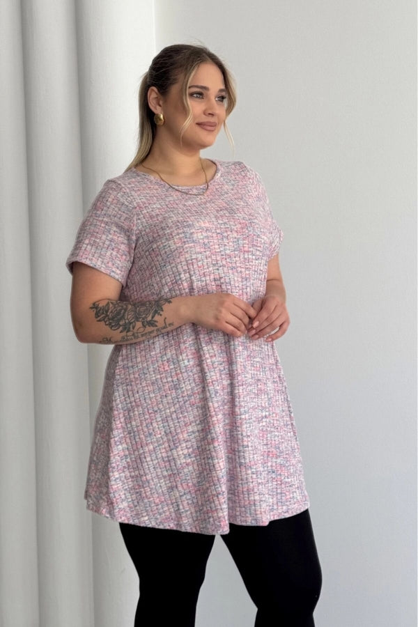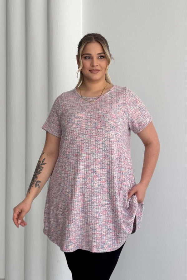 Büyük Beden Bisiklet Yaka Kısa Kollu Fitilli Kırçıllı Bluz 101-29