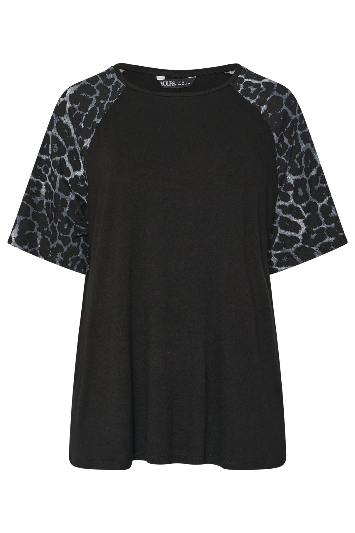 Büyük Beden Bisiklet Yaka Kısa Kollu Leopar Desenli T-shirt 322996
