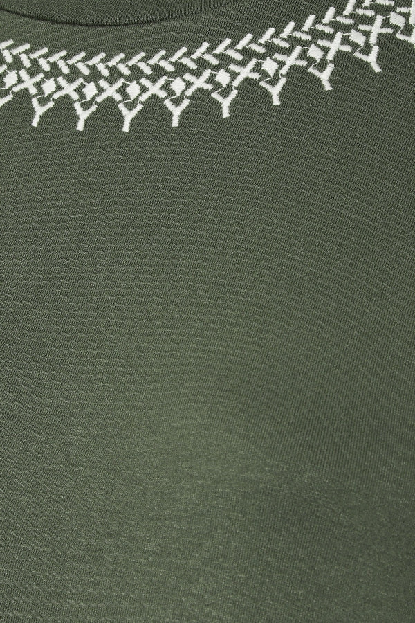 Büyük Beden Bisiklet Yaka Kısa Kollu Omuz Detaylı Etnik Nakışlı T-shirt 304228