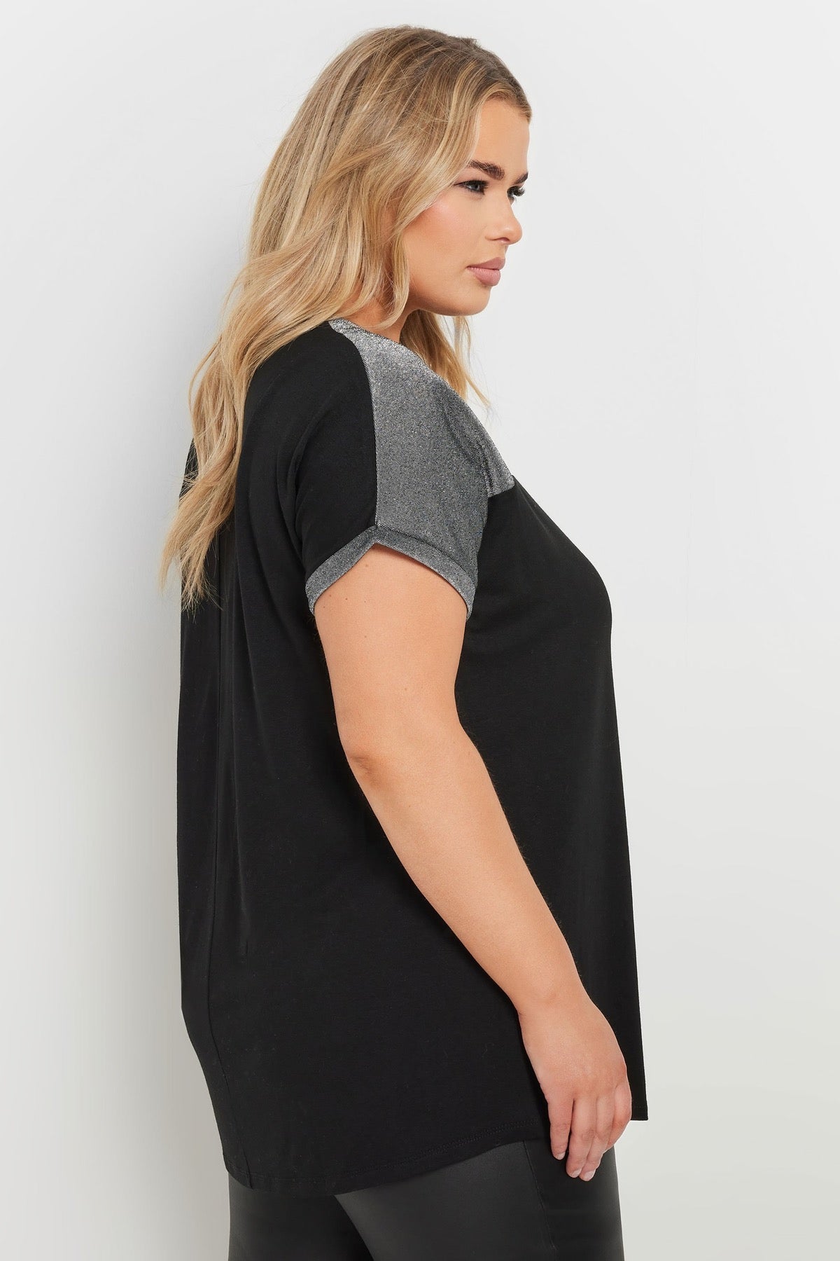 Büyük Beden Bisiklet Yaka Kısa Kollu Parlak Baskılı T-shirt 303844