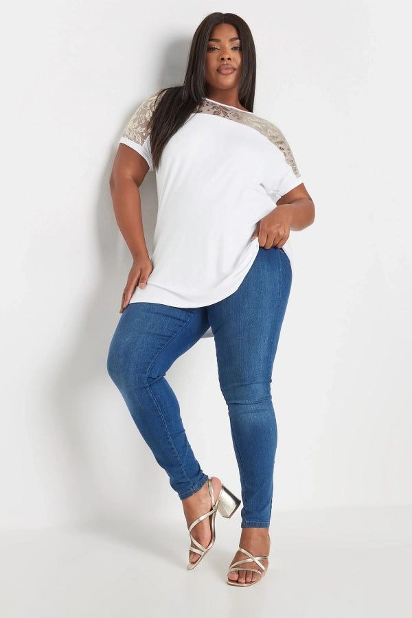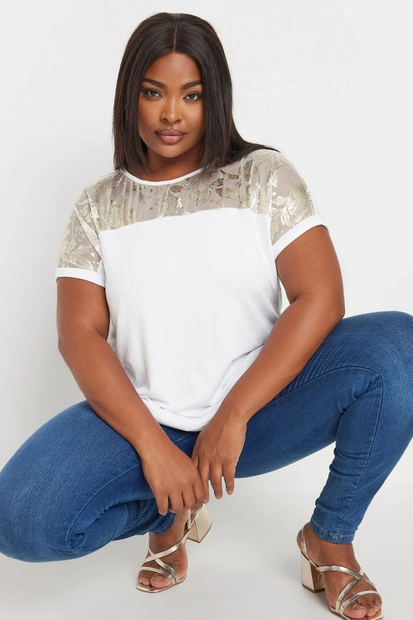 Büyük Beden Bisiklet Yaka Kısa Kollu Yakası Transparan Bluz 303427