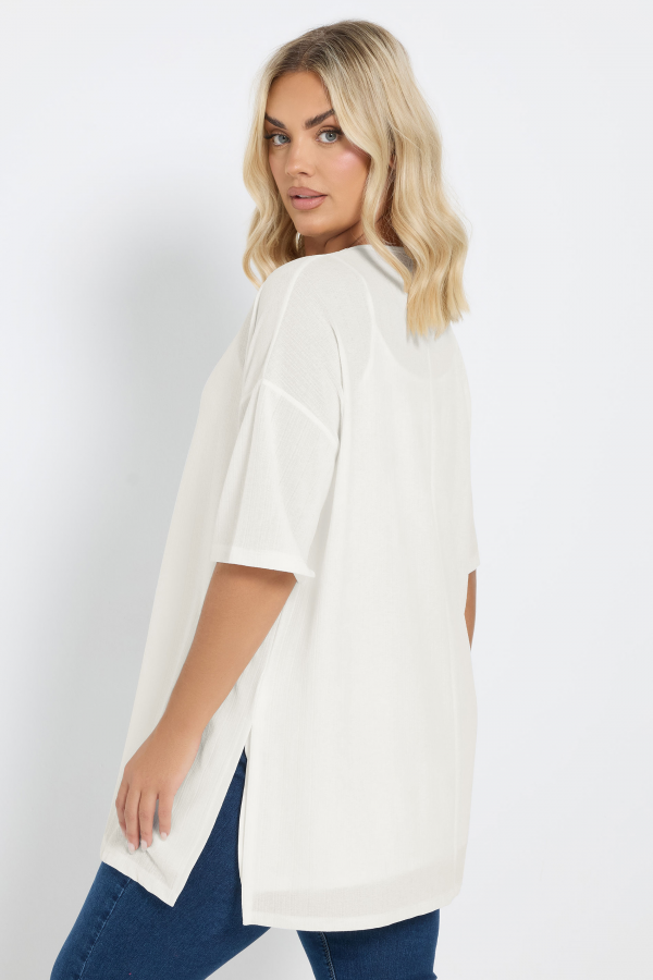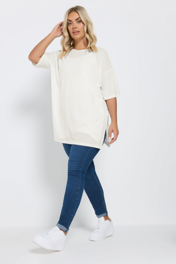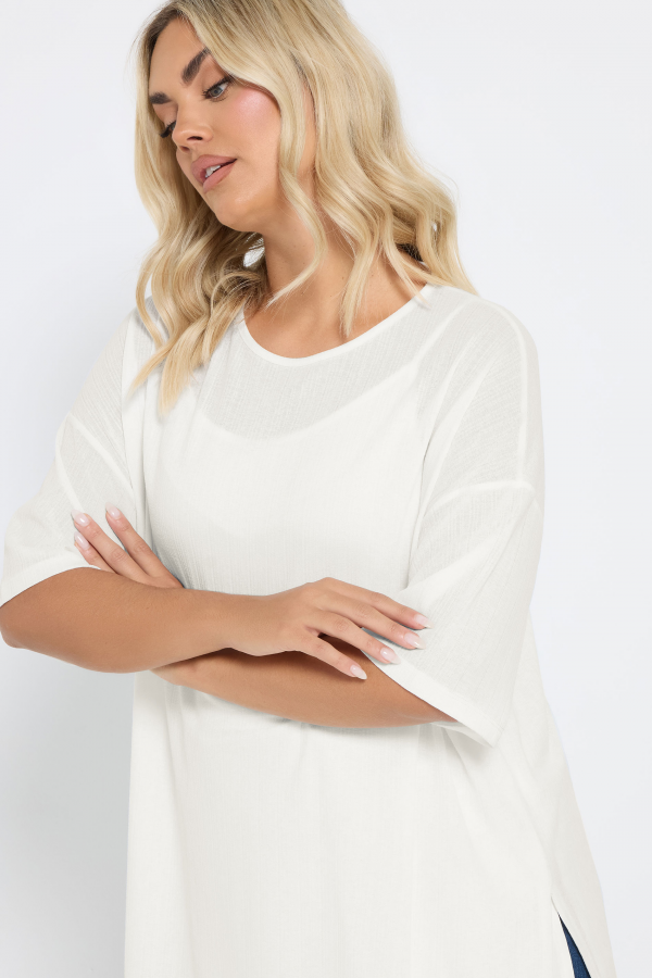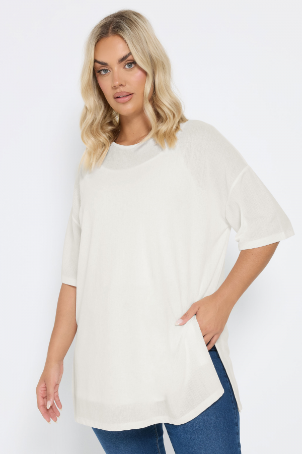 Büyük Beden Bisiklet Yaka Kısa Kollu Yanları Yırtmaçlı Astarlı Bluz 303434