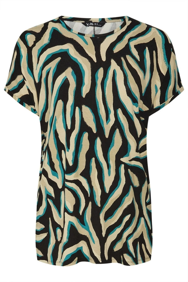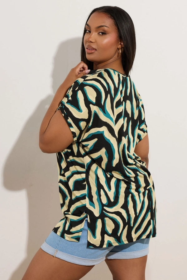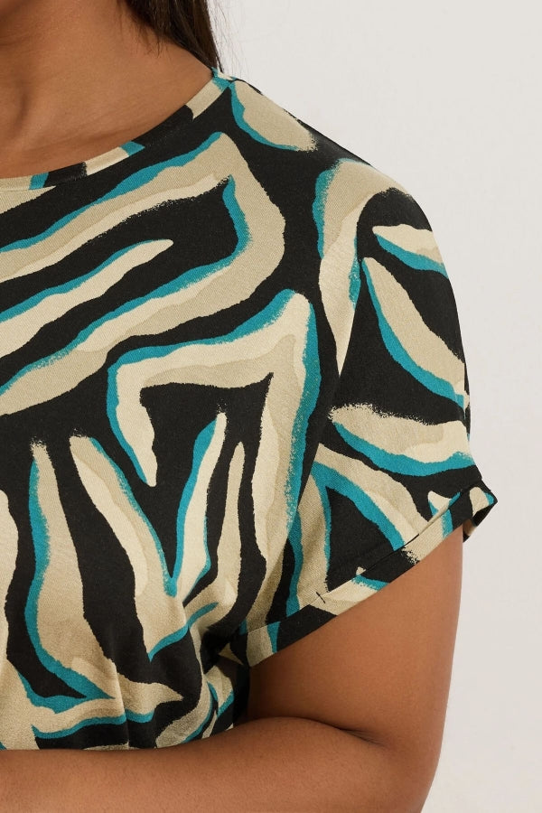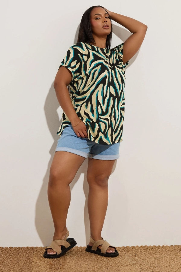 Büyük Beden Bisiklet Yaka Kısa Kollu Zebra Desenli Bluz 303918