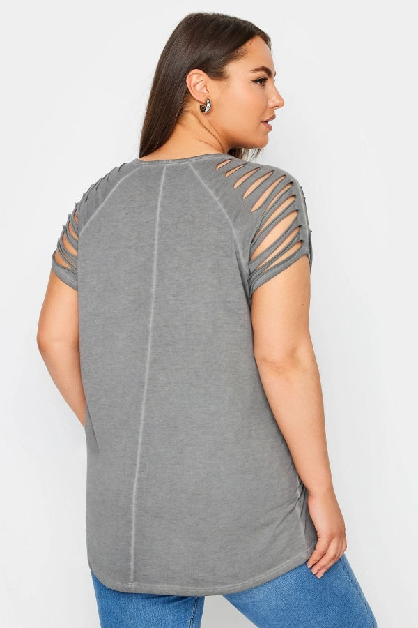 Büyük Beden Bisiklet Yaka Kol ve Omuz Detaylı Baskılı T-shirt 303138
