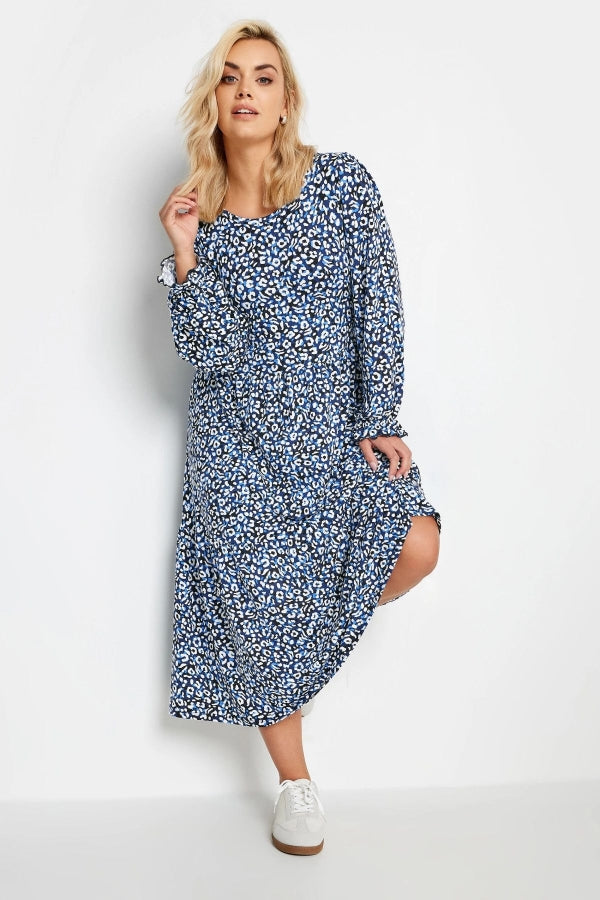 Büyük Beden Bisiklet Yaka Kolları Fırfırlı Leopar Desenli Elbise 137782