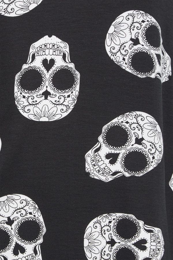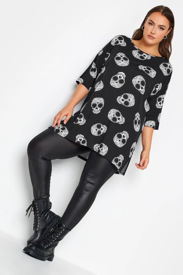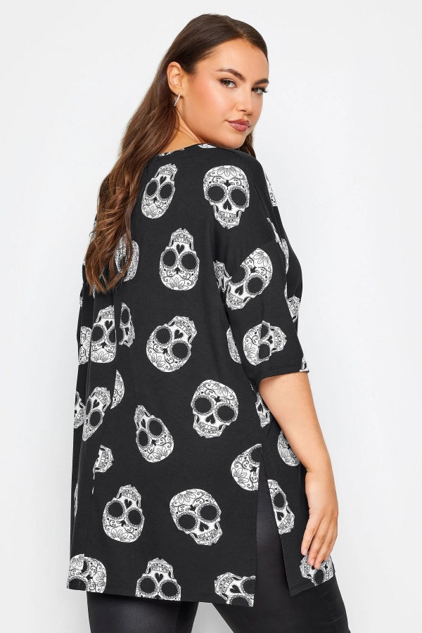 Büyük Beden Bisiklet Yaka Kuru Kafa Baskılı Yarım Kollu T-shirt 321252