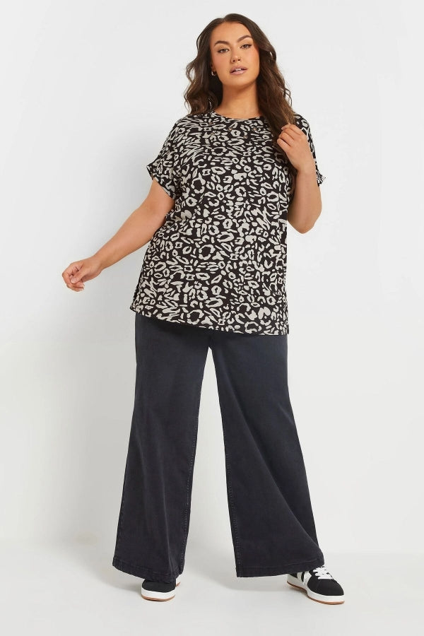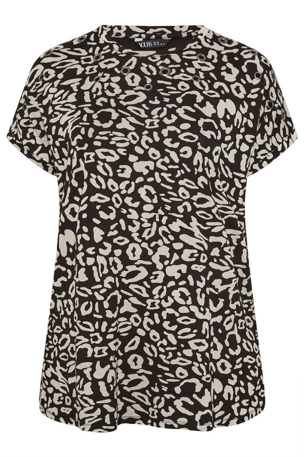 Büyük Beden Bisiklet Yaka Kuş Gözü Detaylı Desenli T-shirt 303865