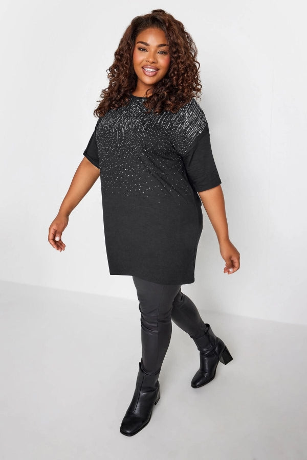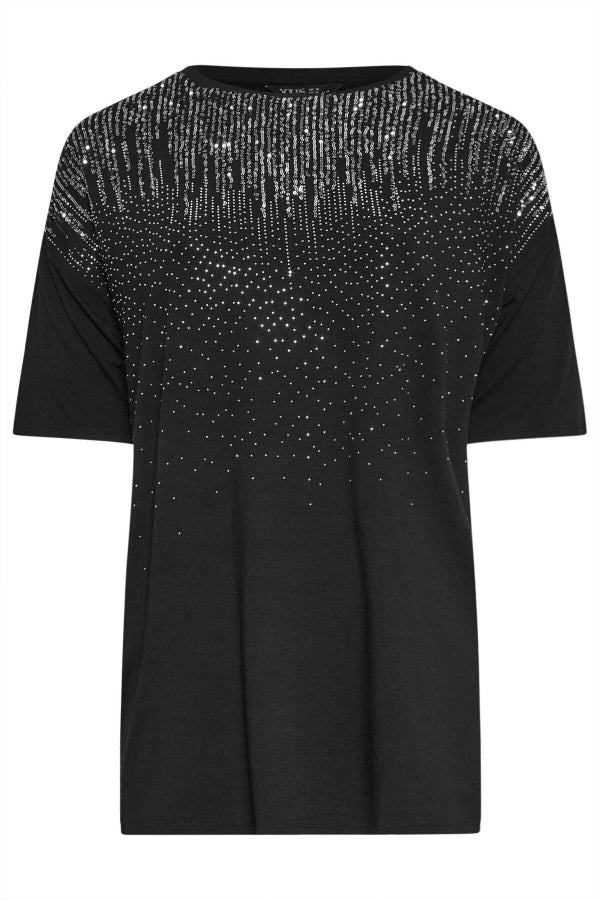 Büyük Beden Bisiklet Yaka Payet Süslemeli Kısa Kollu T-shirt 302015 Vervegrand Büyük Beden Bisiklet Yaka Payet Süslemeli Kısa Kollu T-shirt 302015 Vervegrand