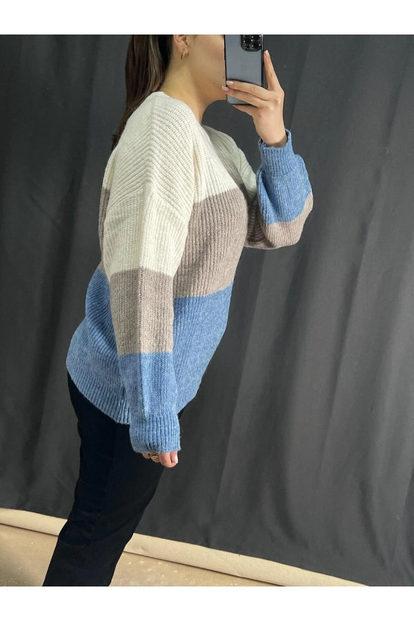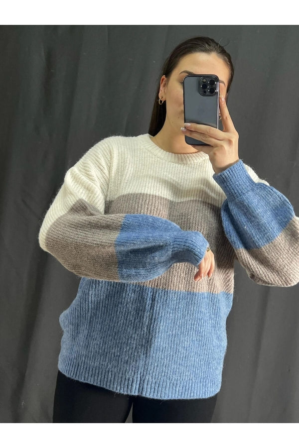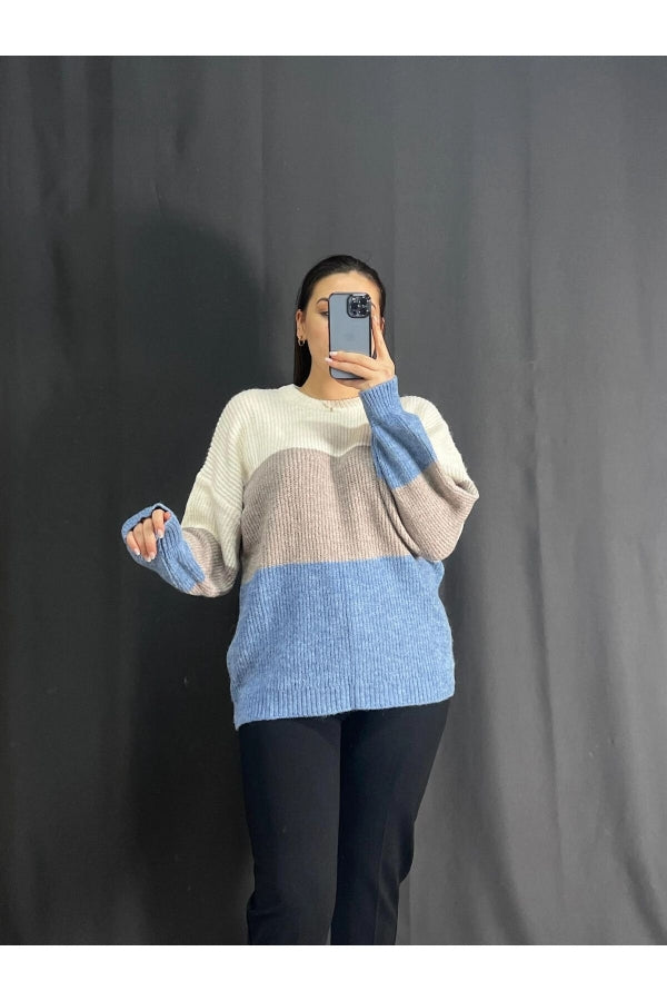 Büyük Beden Bisiklet Yaka Renk Geçişli Uzun Kollu Triko Kazak 302344