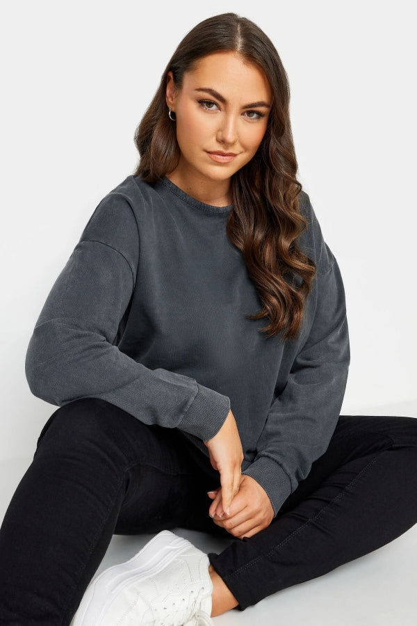 Büyük Beden Bisiklet Yaka Sırt Detaylı Uzun Kollu Yıkamalı Sweatshirt 302775
