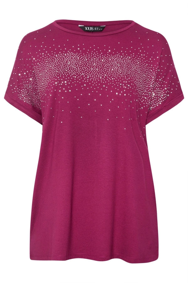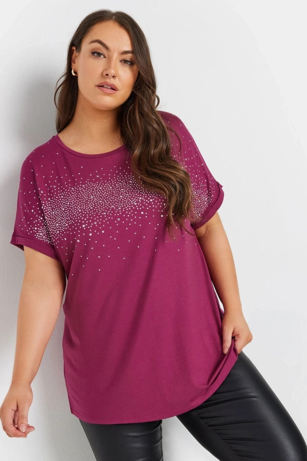 Tişört koleksiyonunuza bu ışıltılı, taş işlemeli parça ile göz alıcı bir dokunuş katın! Rahat pamuk karışımlı kumaşı, zarif U yakası ve göz kamaştıran kristal taş işlemeleriyle hem konforlu hem de iddialıdır. Deri bir pantolon ve topuklu ayakkabılarla kombinleyerek partiye hazır, mükemmel bir görünüm yaratın. Bu sezon ışıltınızla parlayın ve tüm dikkatleri üzerinize çekin!