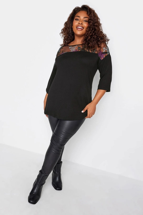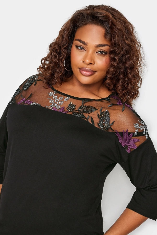Büyük Beden Bisiklet Yaka Tül Detaylı Fakir Kol Bluz 302657