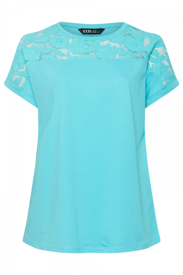 Büyük Beden Bisiklet Yaka Tül Detaylı Kısa Kollu T-shirt 321836