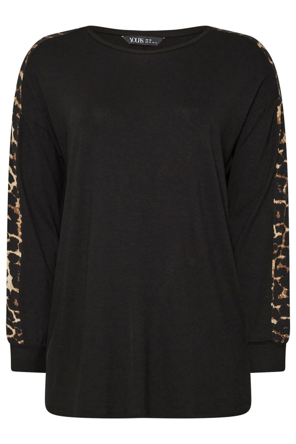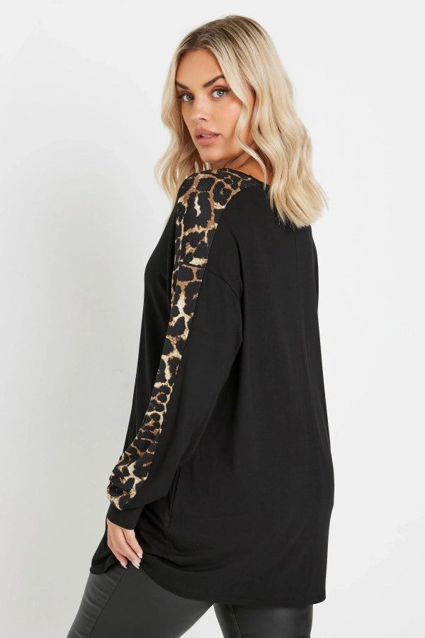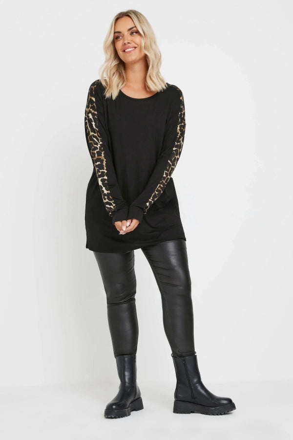 Büyük Beden Bisiklet Yaka Uzun Kolları Leopar Desenli Bluz 303723