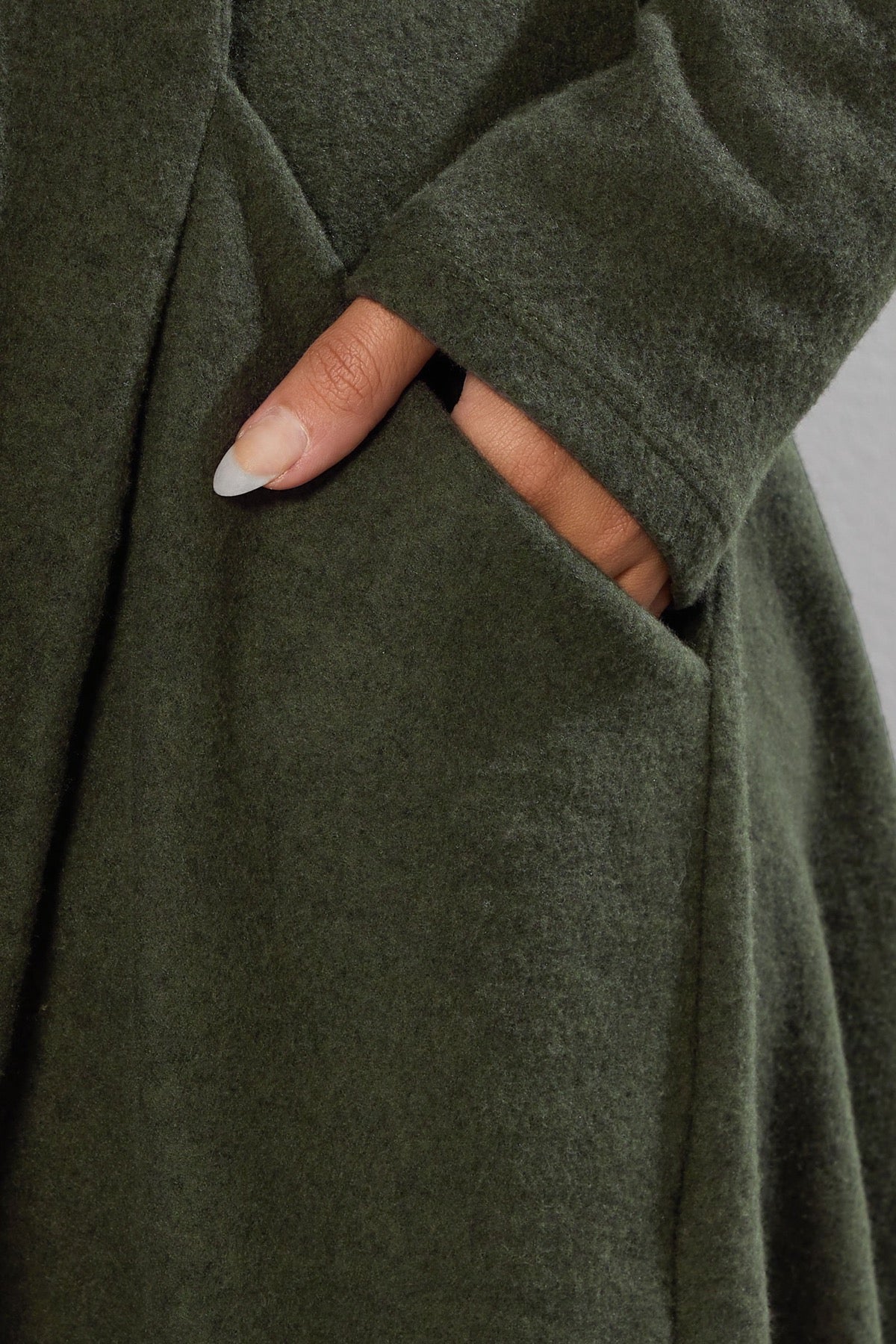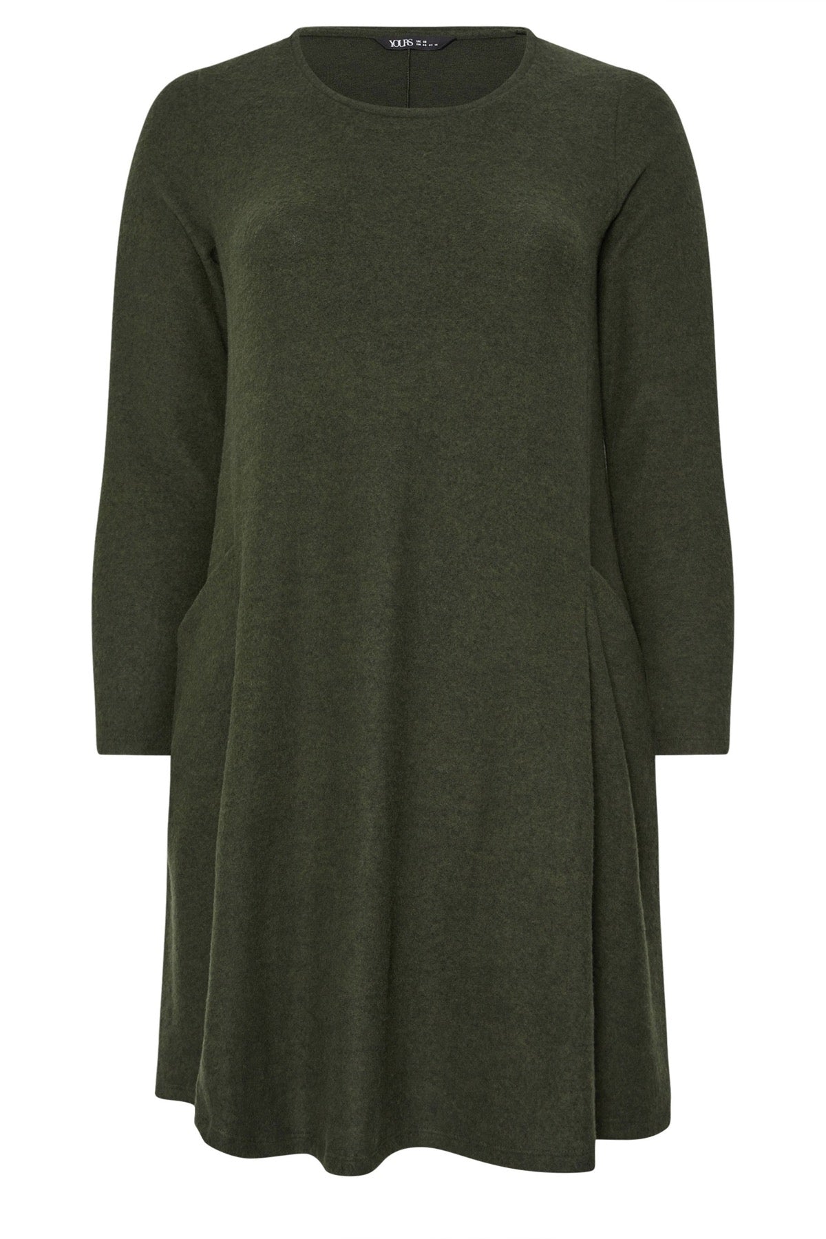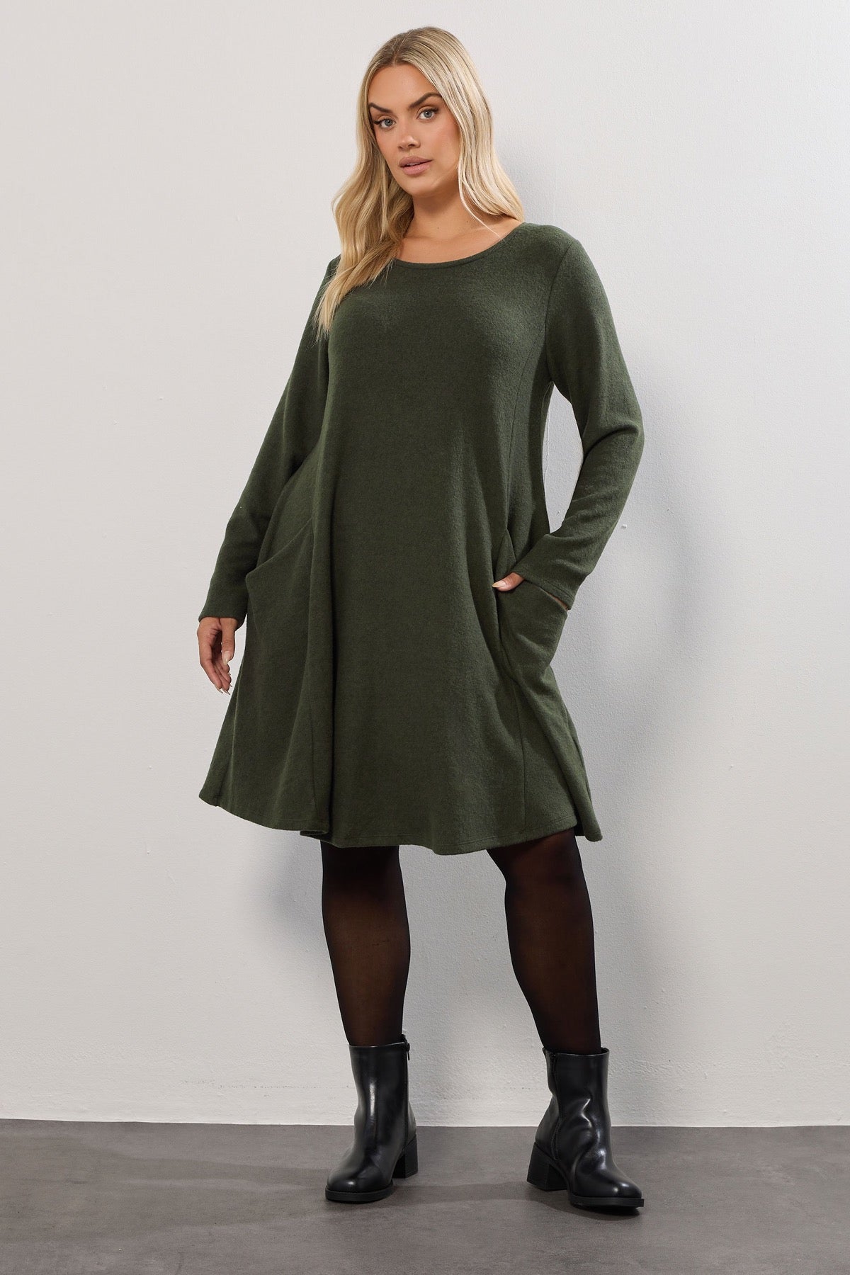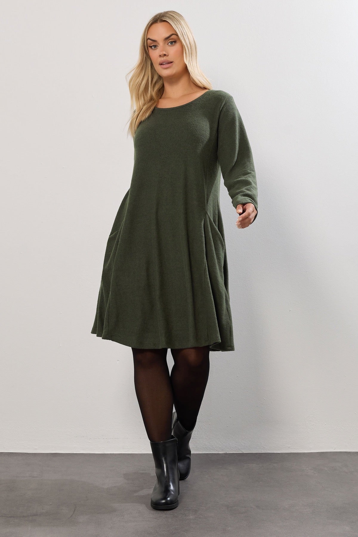 Büyük Beden Bisiklet Yaka Uzun Kollu Cepli Peluş Midi Elbise 285079