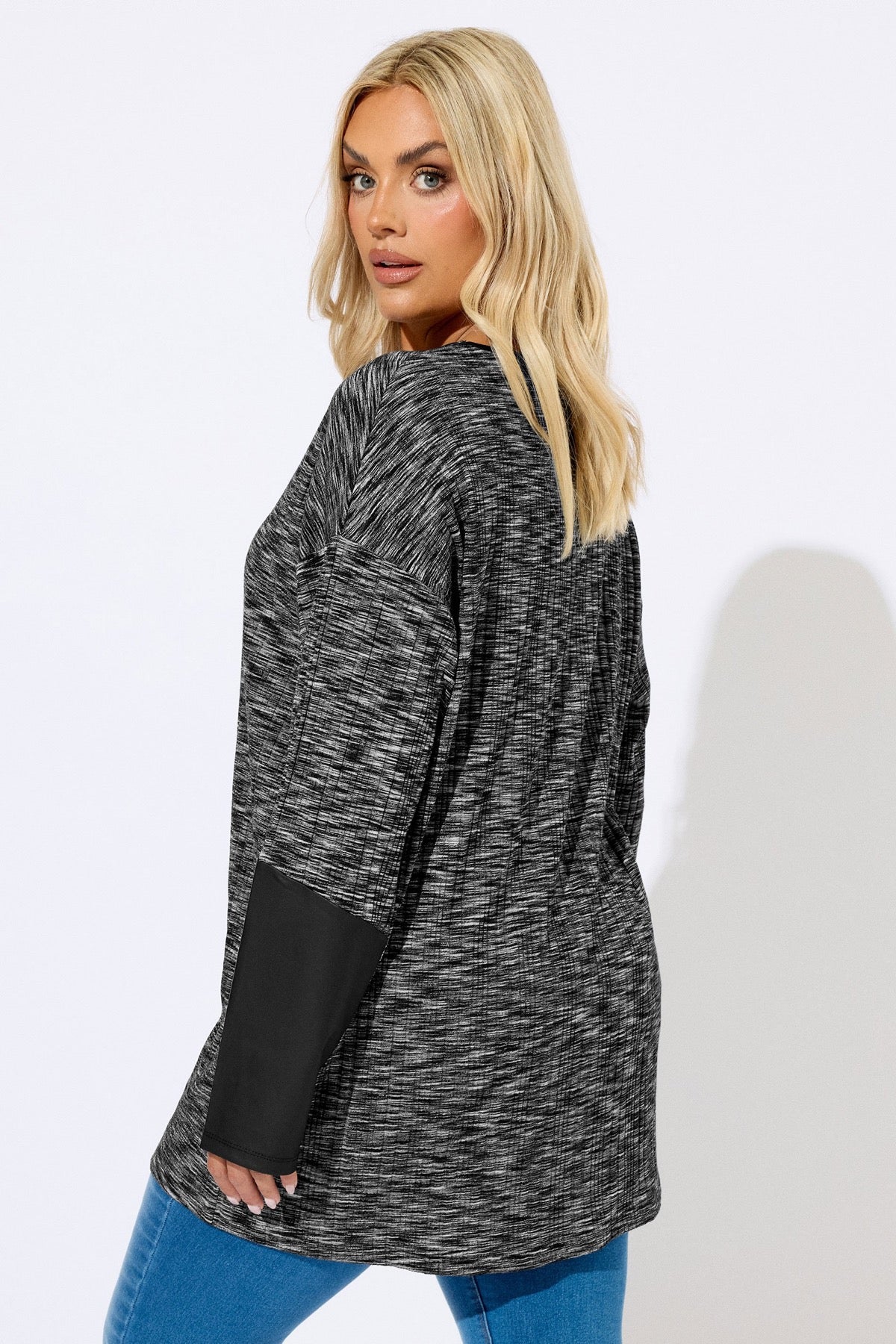 Büyük Beden Bisiklet Yaka Uzun Kollu Deri Detaylı T-shirt 303939