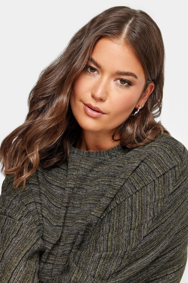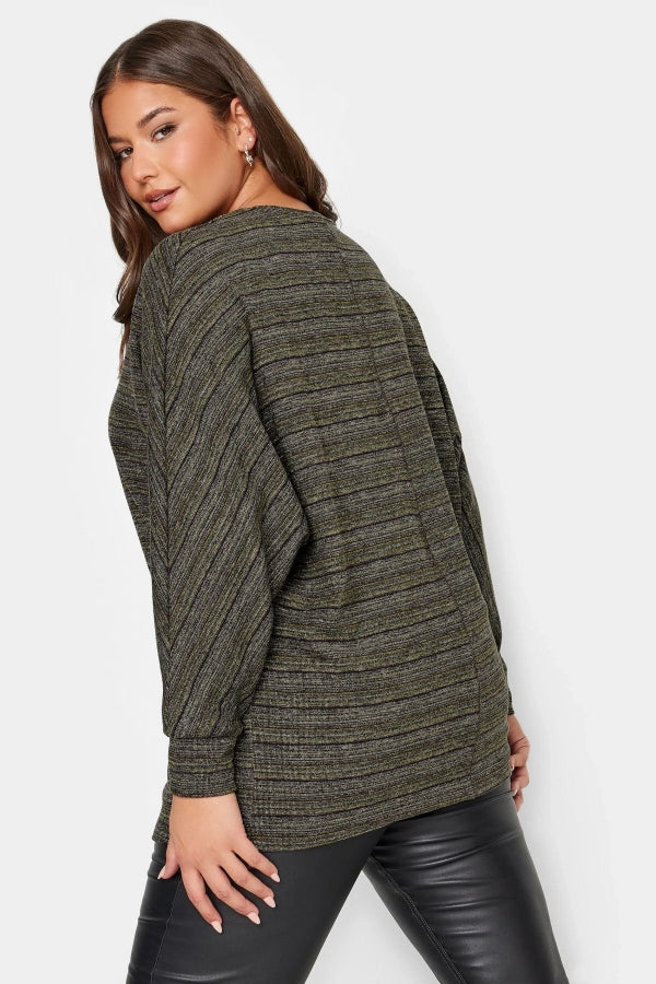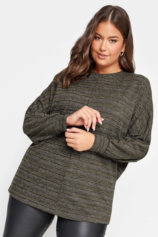 Büyük Beden Bisiklet Yaka Uzun Kollu Dikiş Detaylı Bluz 302602